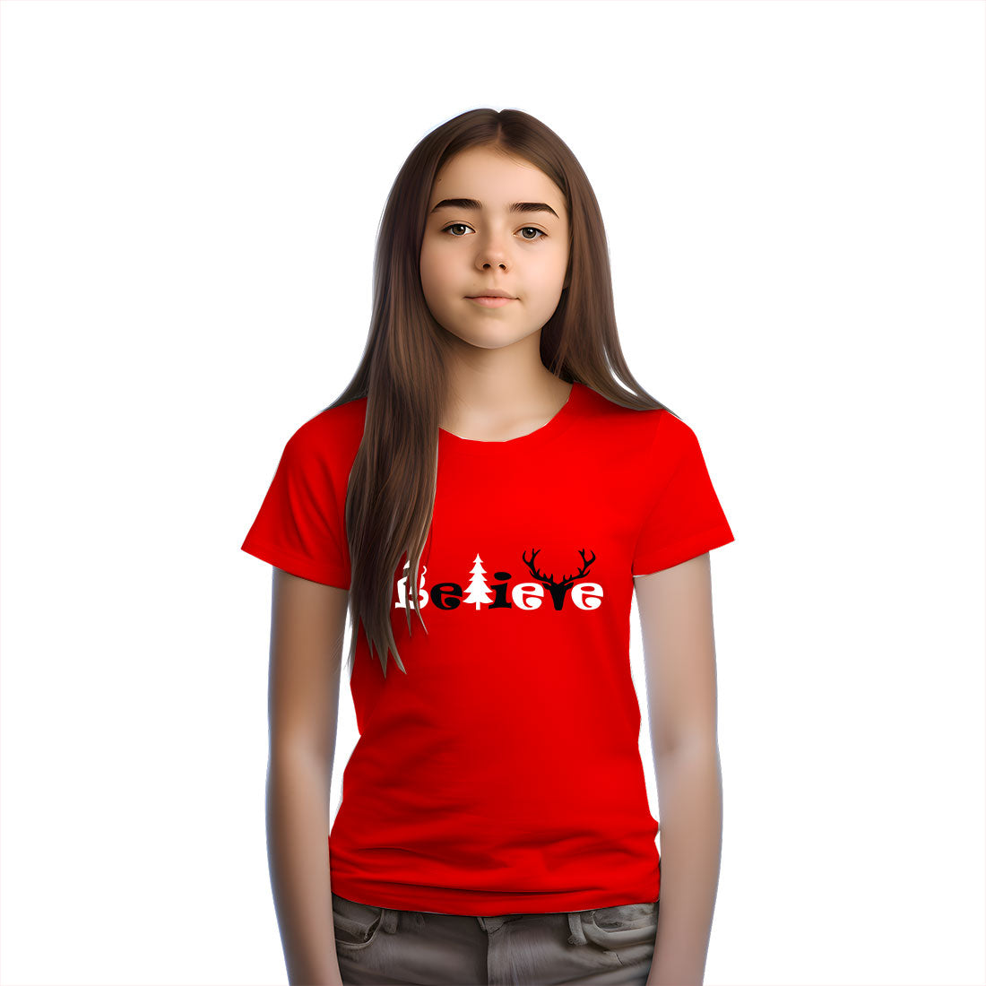 Believe Kids Christmas T-Shirt - Soft Cotton for Festive Fun (D7)
