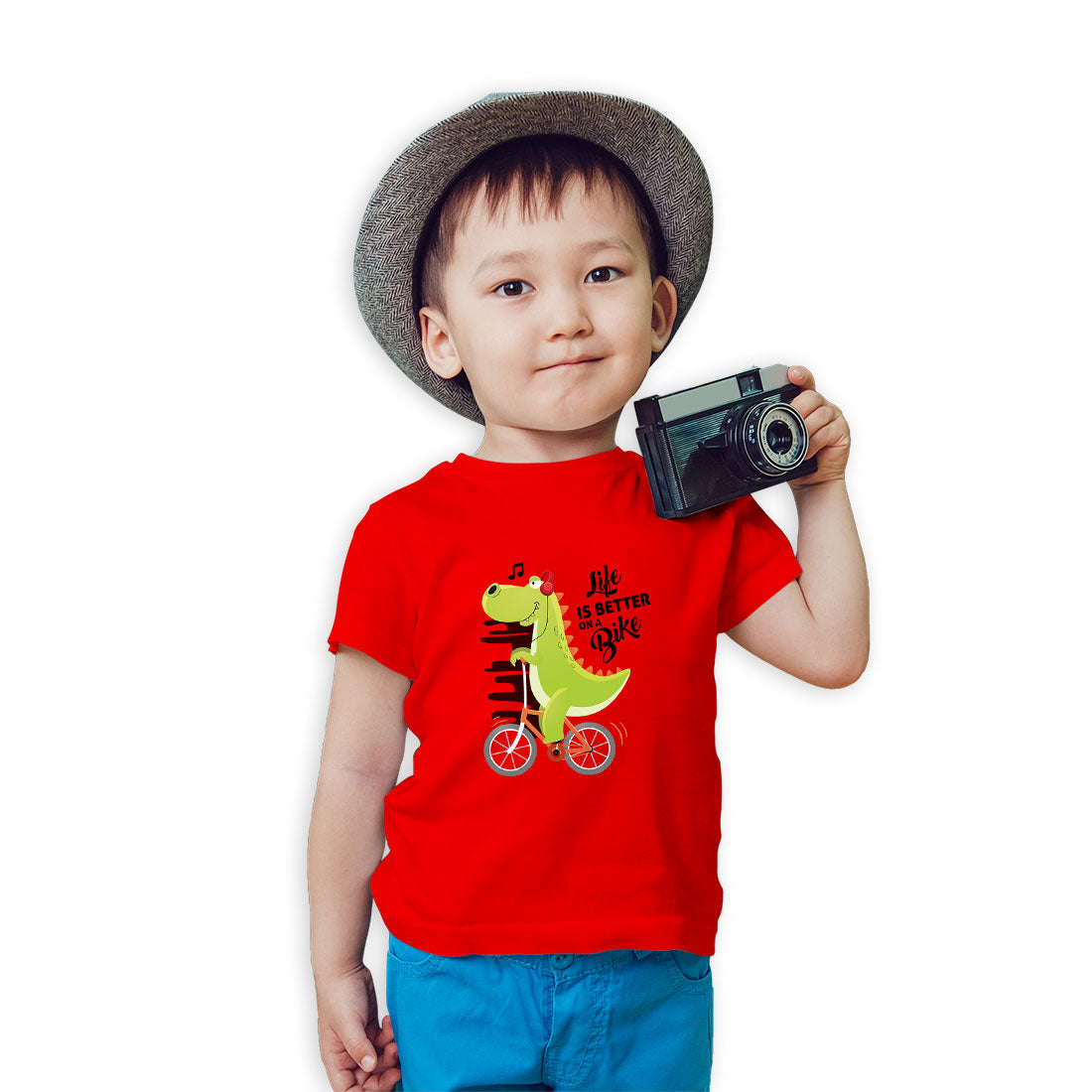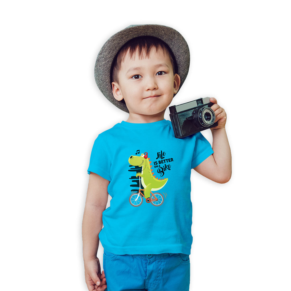 Dino on a Bicycle Kids T-Shirt - Playful, Comfy & Super Soft! (D136)