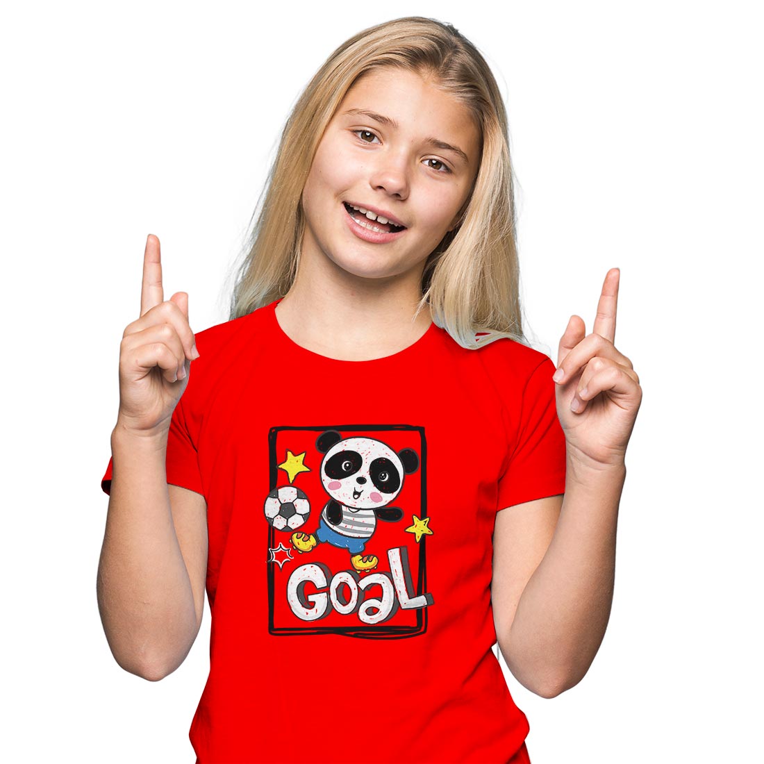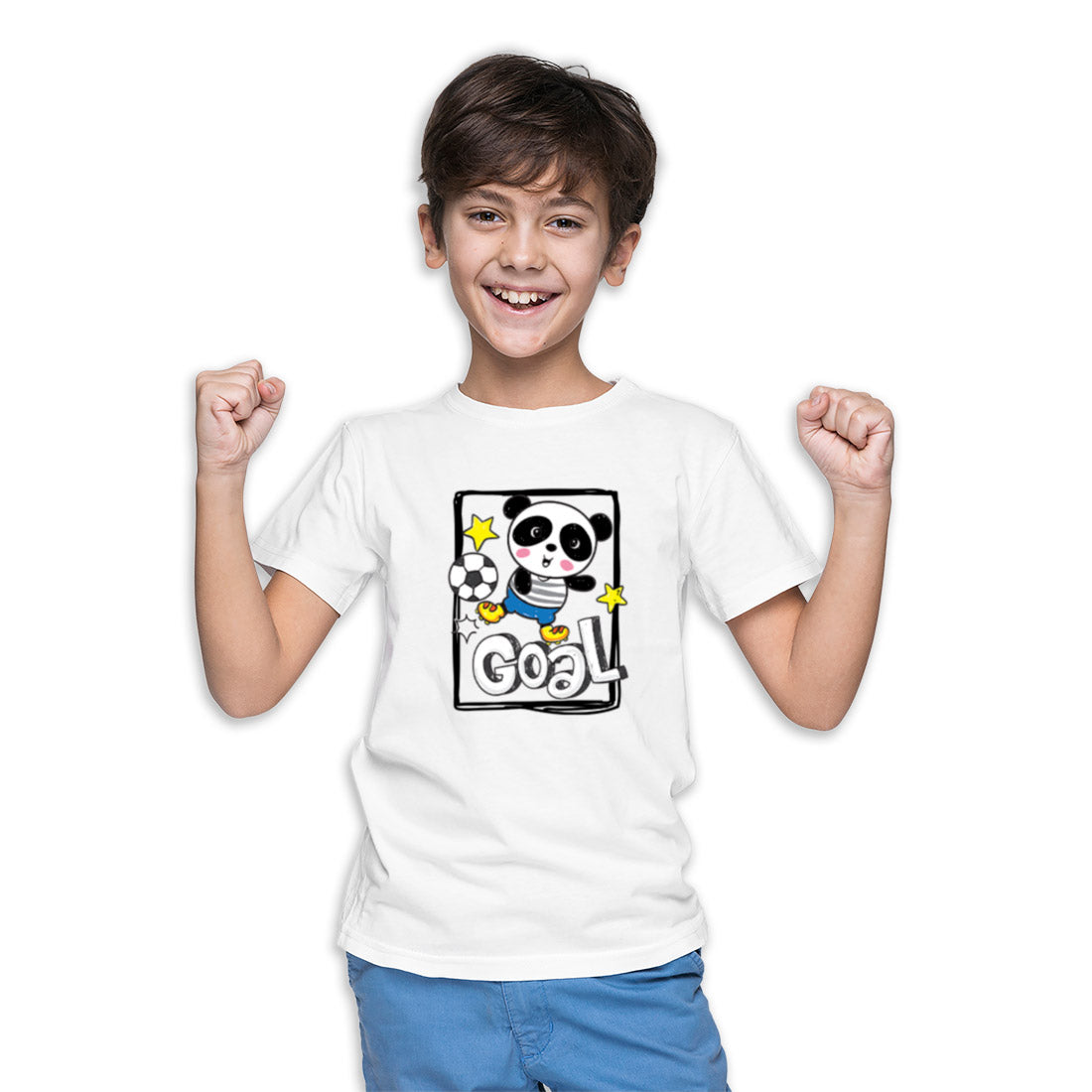 Goal-Scoring Panda Kids T-Shirt - Super Combed Bio-Wash Cotton (D161)