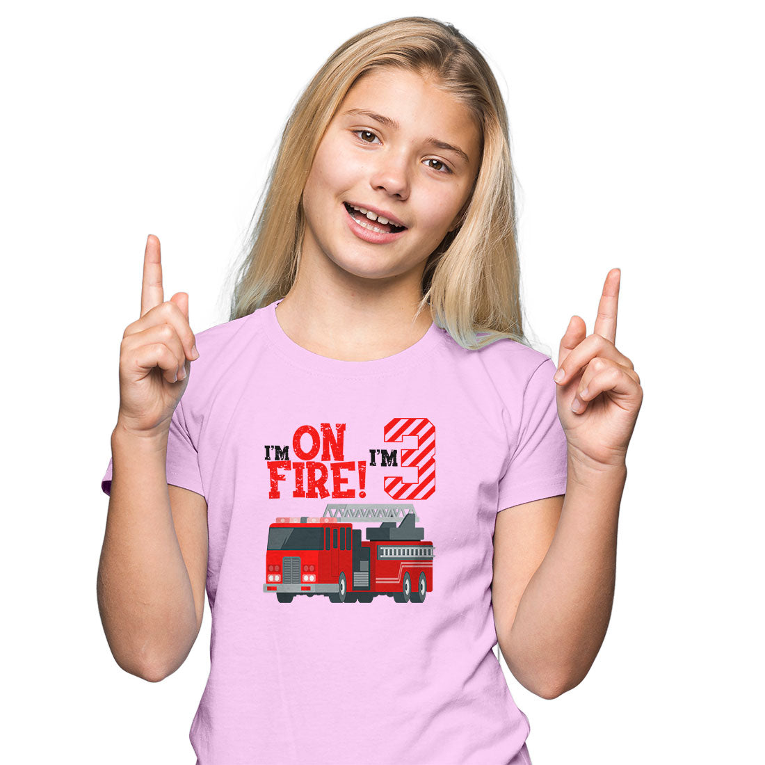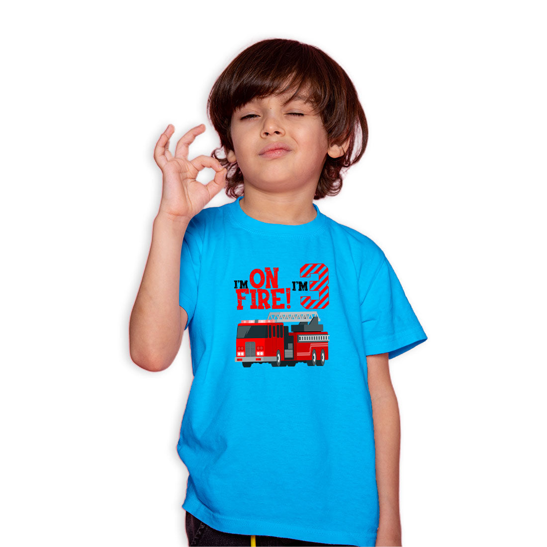 I’m On Fire, I’m Three Kids T-Shirt - Super Combed Bio-Wash Cotton (D35)
