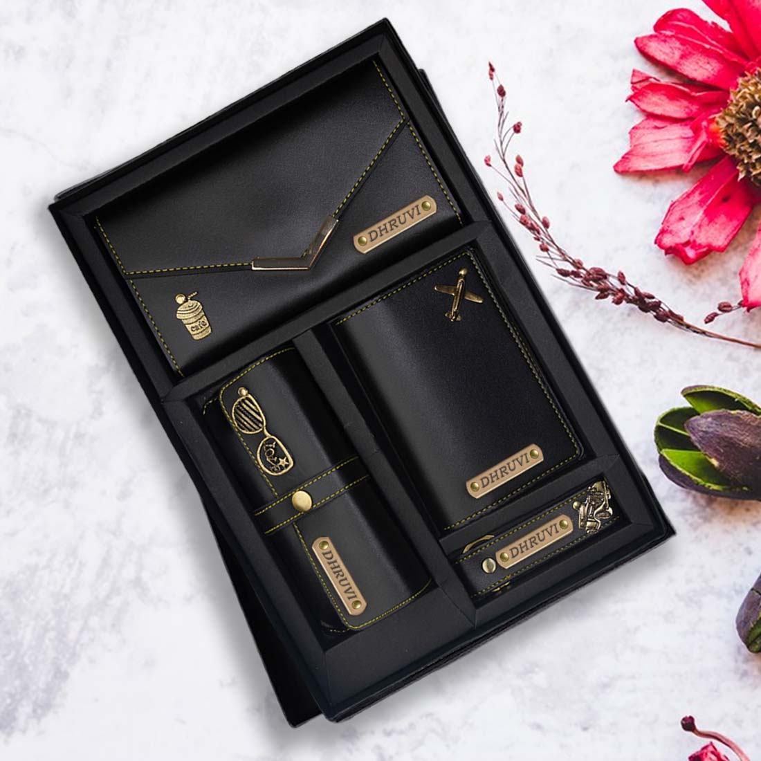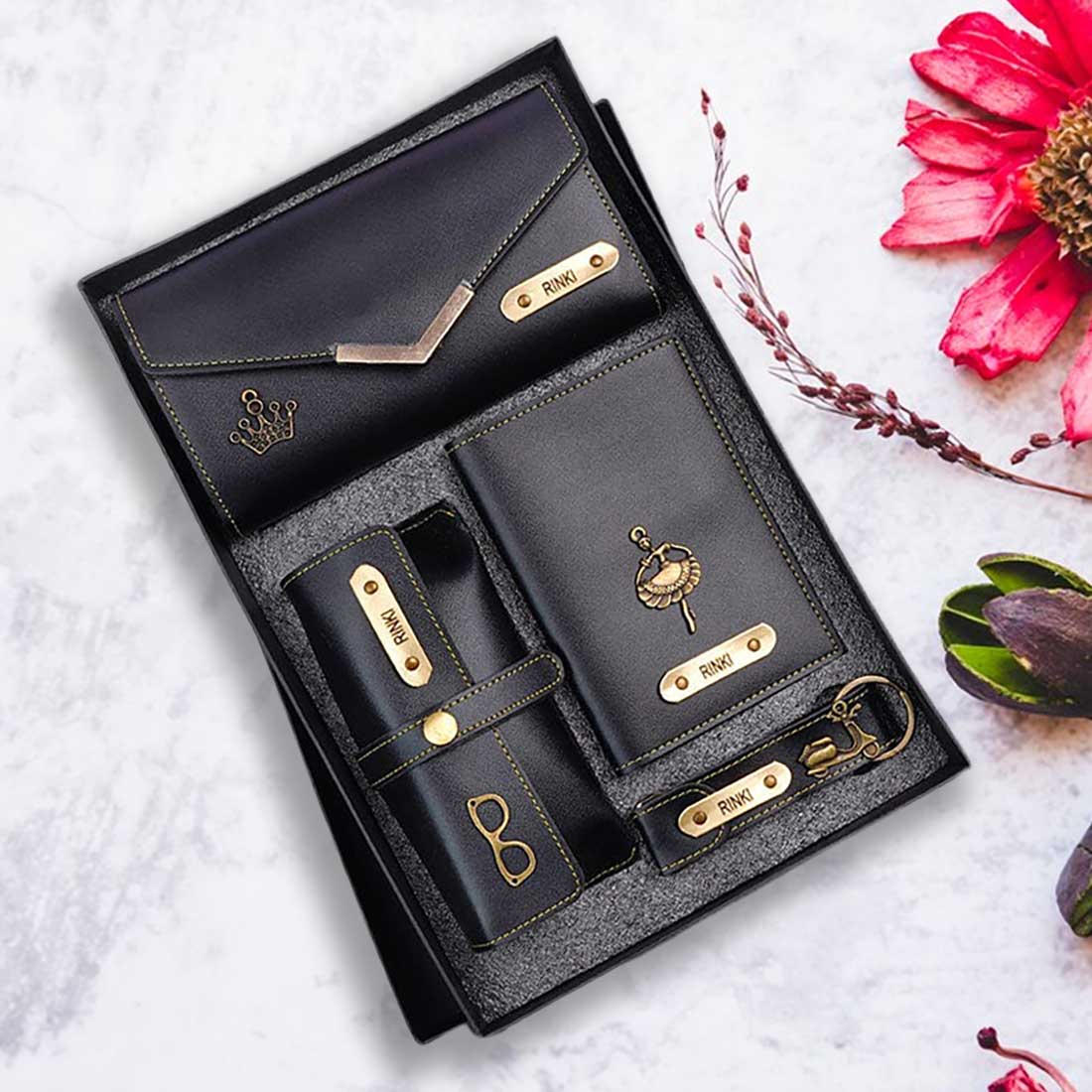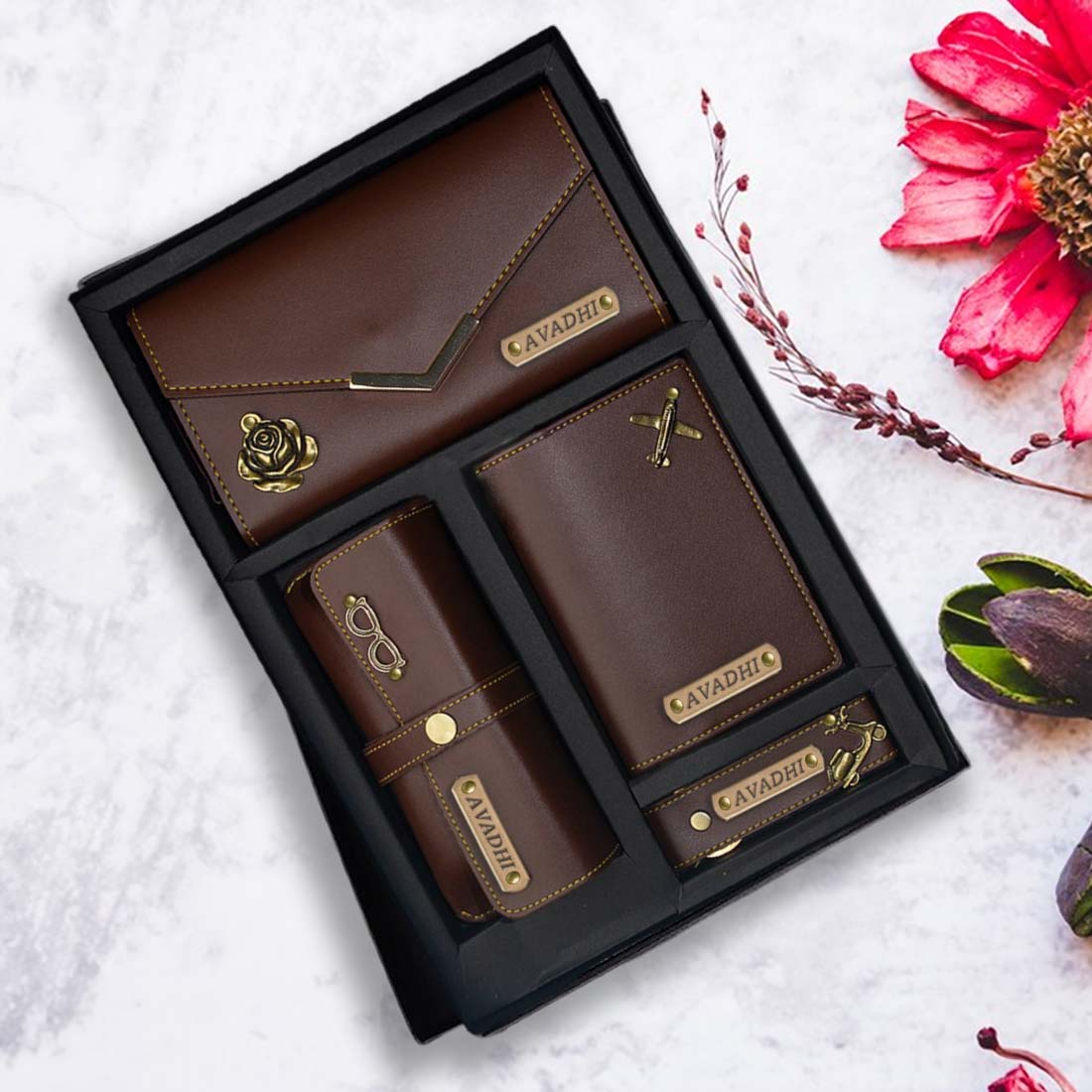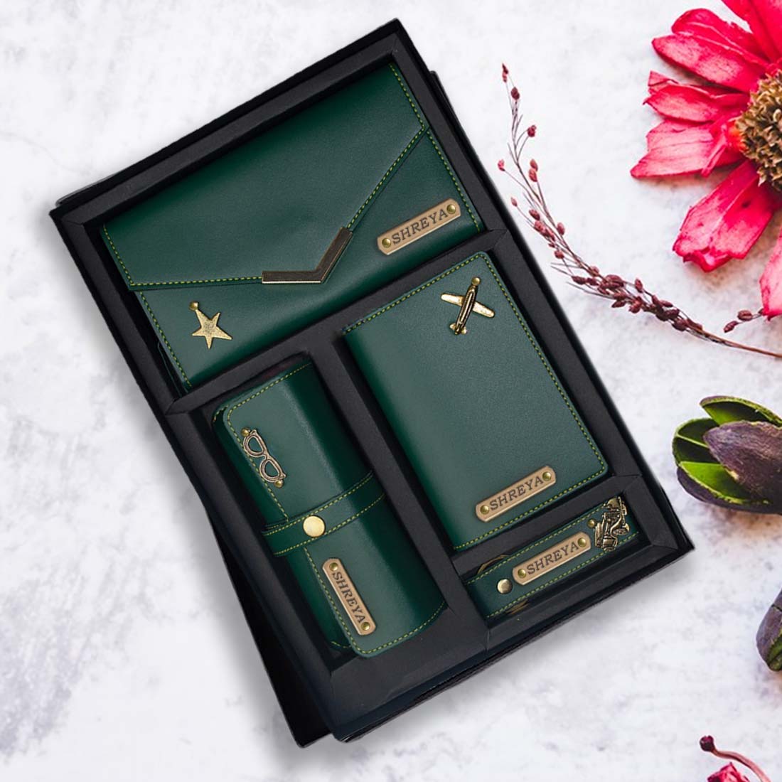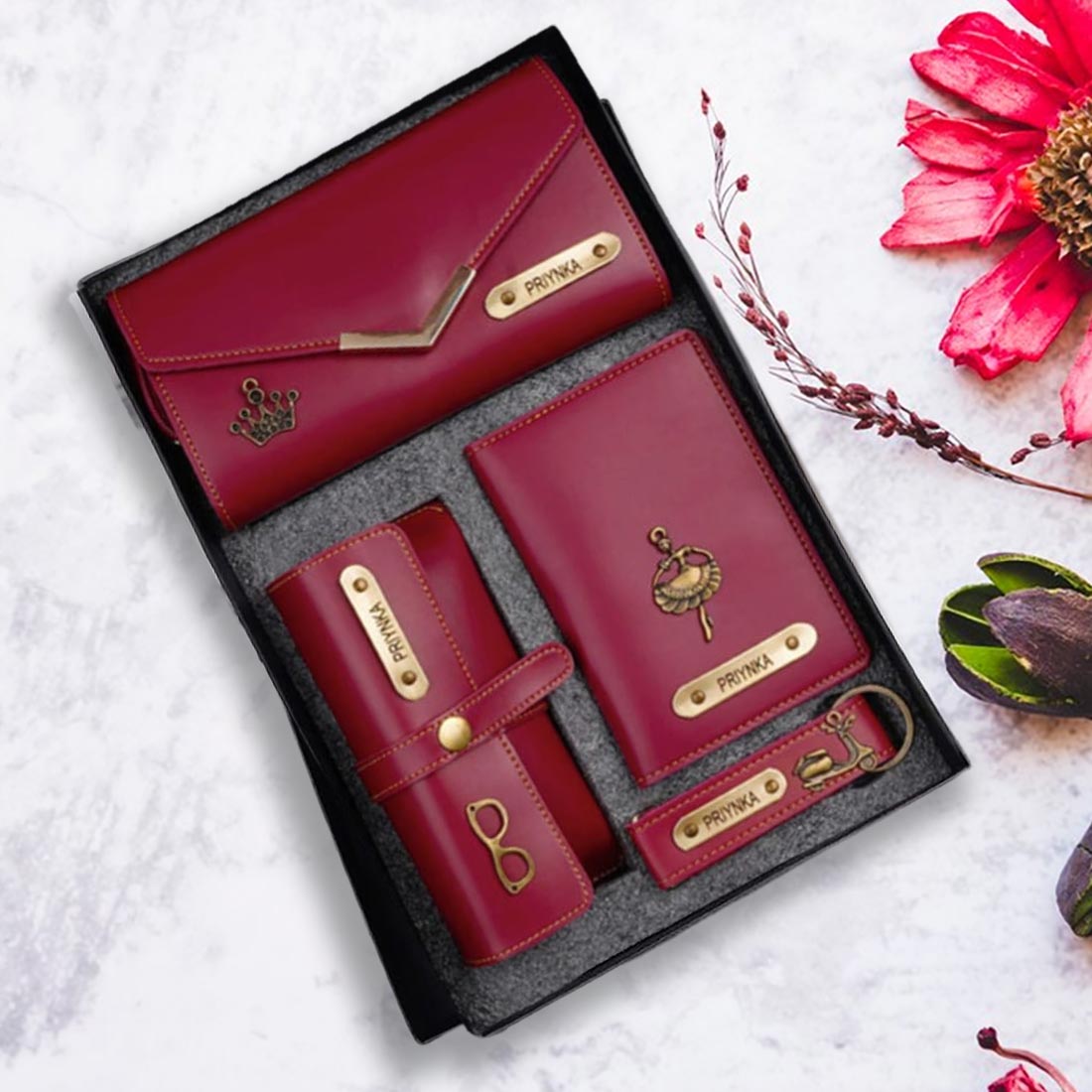 - Ladies 4pc Combo : 3 Fold Clutch, Sunglass Holder, Keychain & Passport Cover