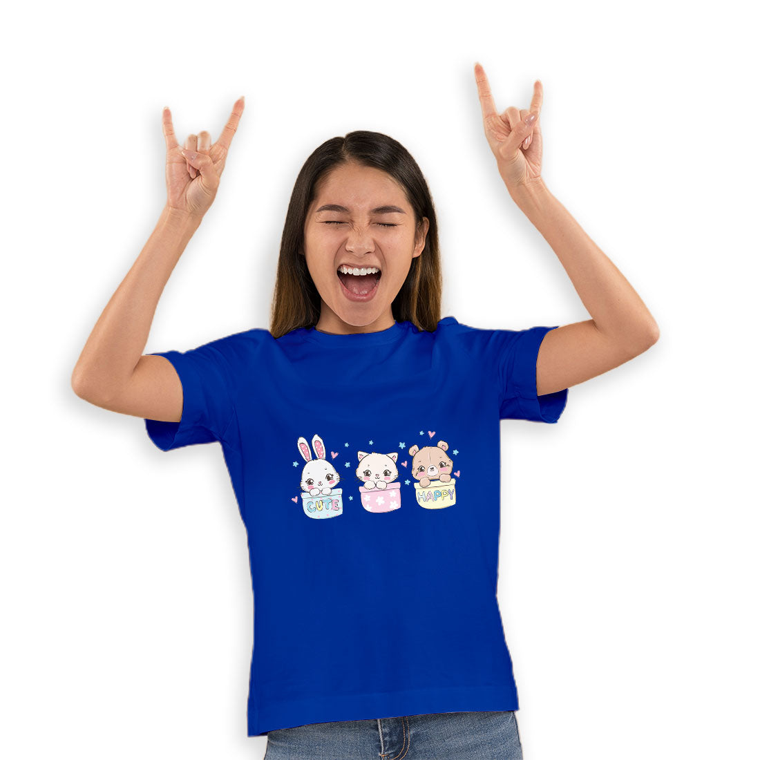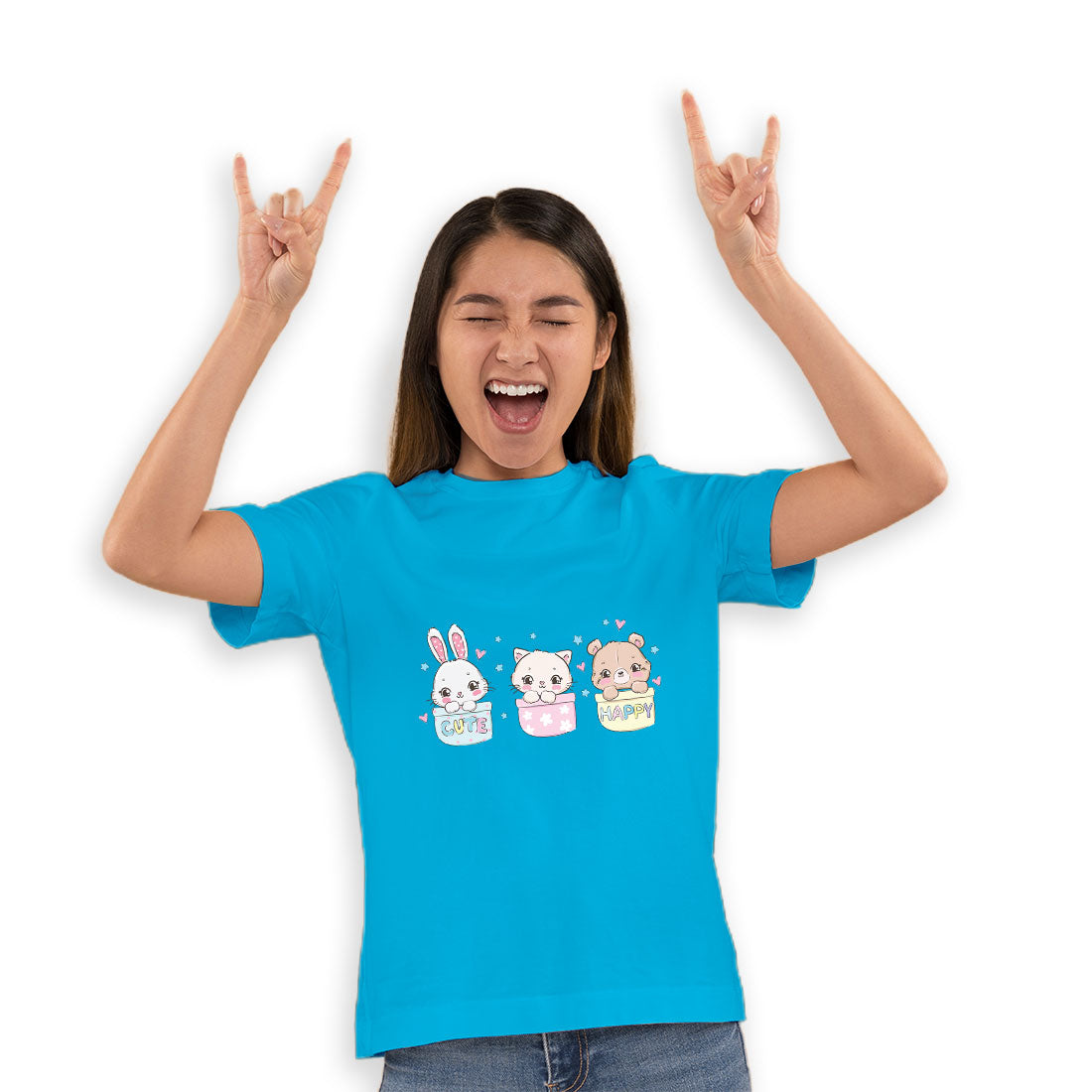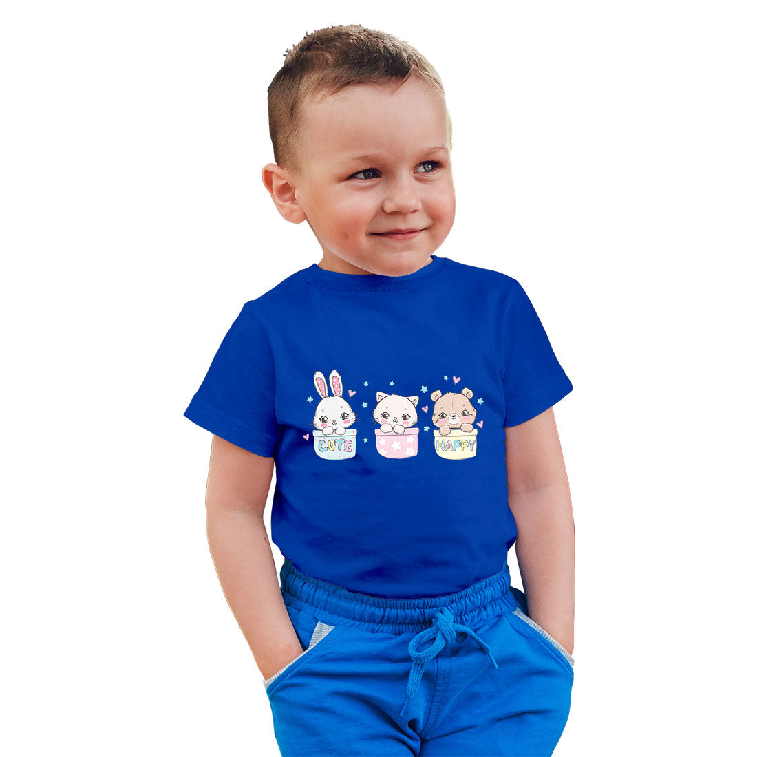 Little Cat, Bear & Bunny Kids T-Shirt - Combed Cotton, Round Neck, Half Sleeve (D131)