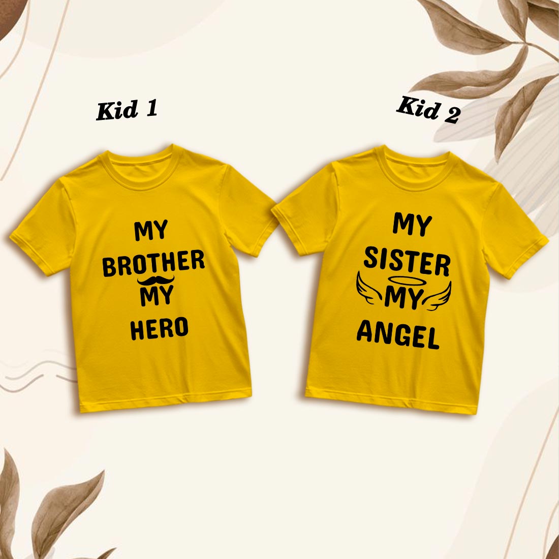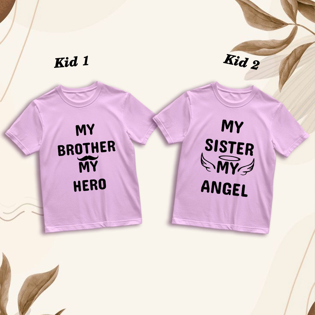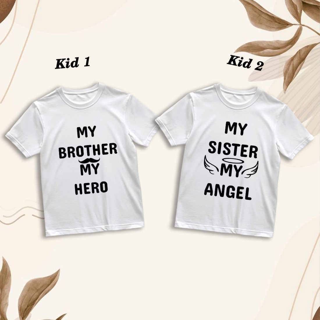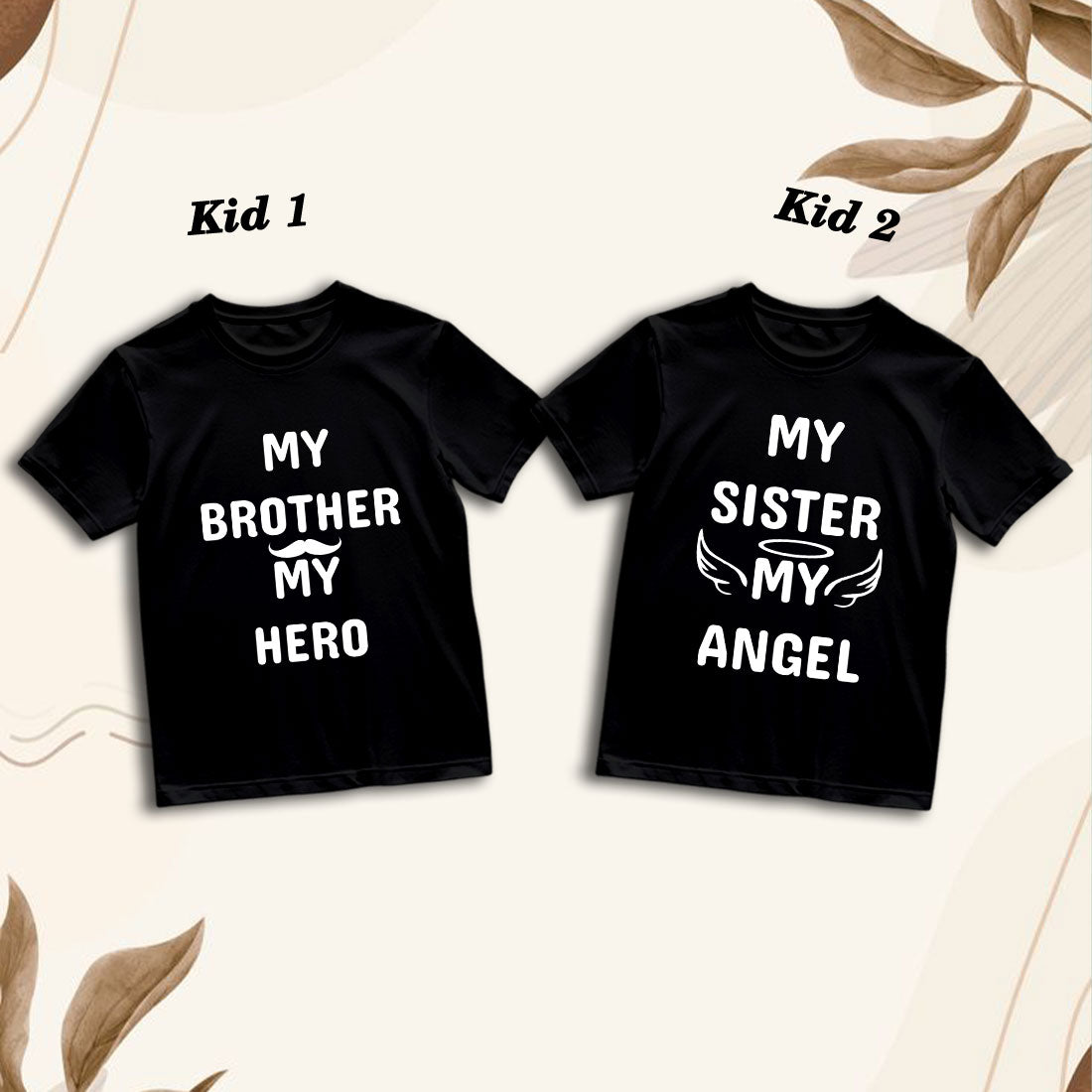 Matching Family T-Shirts - Brother Hero & Sister Angel Print | Cotton Comfort (D20)