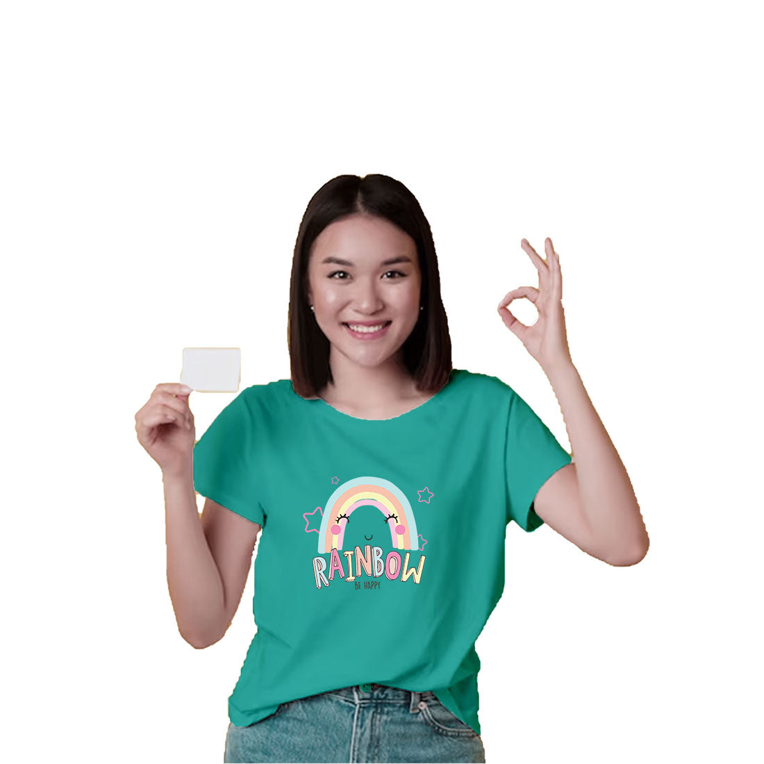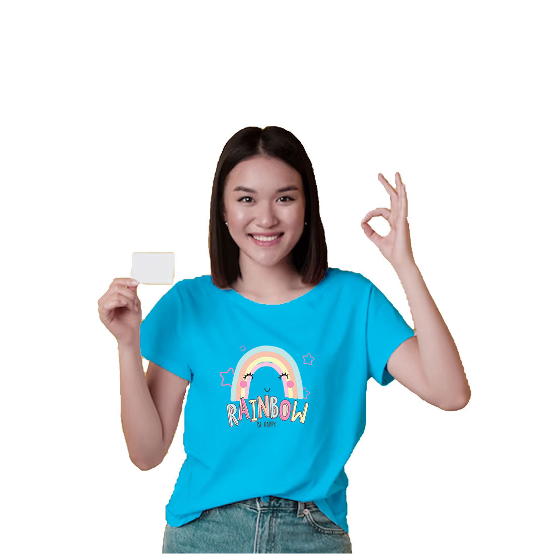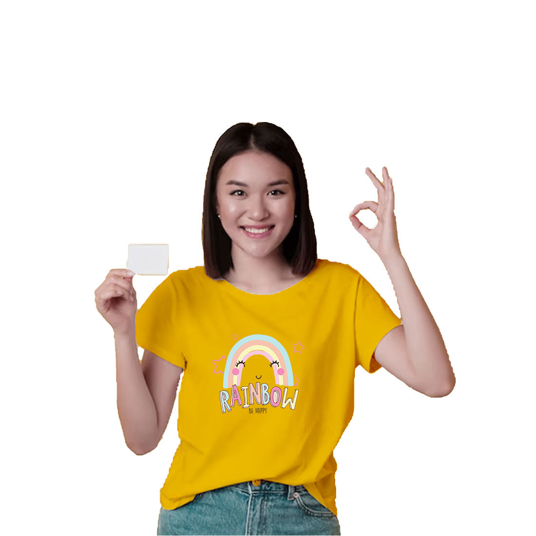 - 🌟 Design: Cheerful Rainbow 'Be Happy' Print